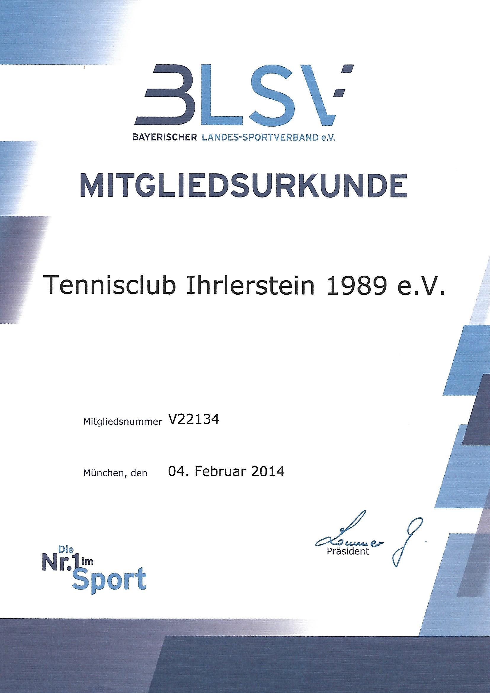 "Der Verein ist Mitglied des Bayerischen Landes-Sportverbandes e.V. und erkennt dessen Satzung und Ordnungen an. Durch die Mitgliedschaft von Einzelpersonen im Verein wird auch die Zugehörigkeit der Einzelpersonen zum Bayerischen Landes-Sportverband vermittelt."