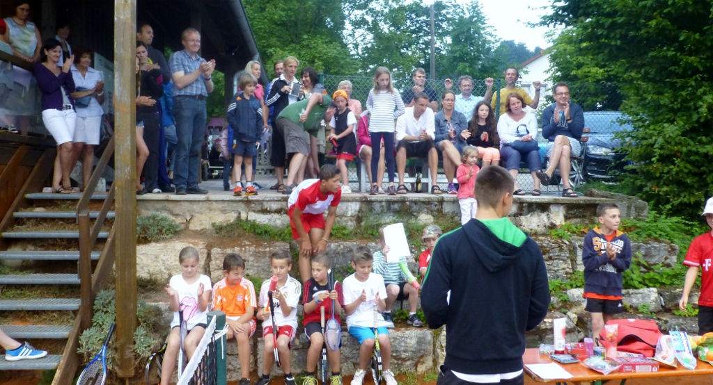 Wolfgang Bayer heizte ein letztes mal für dieses Jahr den Grill an und brachte die Bratwürstel und Steaks auf die Teller. Nicht nur Turniersieger Christian wurde geehrt, alle Teilnehmer erhielten Sachpreise aus der Vereinskooperation mit dem Raj-Tennisversand.
