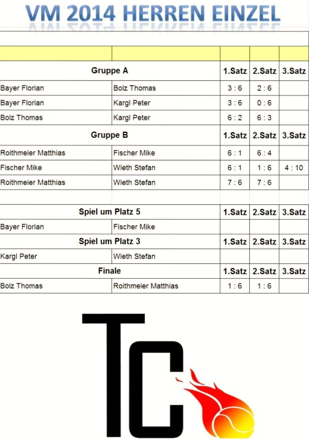 Sollte am nächsten Wochenende Tenniswetter sein, werden wir das Turnier am Sonntag, den 28.9. durchführen.