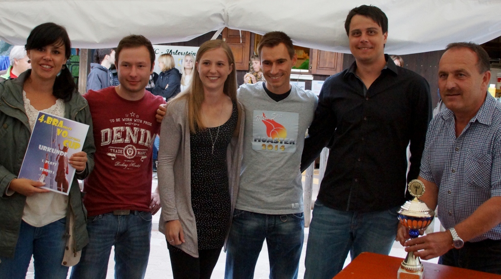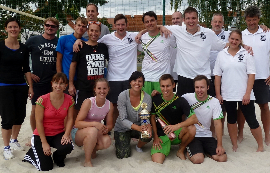 Beim Volleyballturnier pritschten und baggerten heuer acht Mannschaften mit. Gewonnen hat - wie sollte es anders sein - unsere 1. Mannschaft mit Marion Feldl, Melanie Wachter, Johannes Kargl, Flo Hackl und Matthias Roithmeier. Nachdem der erste Wanderpokal nach drei Turniersiegen seit letztem Jahr im Tennisheim steht, musste Bürgermeister Sepp Häckl einen neuen anschaffen. Und auch der bleibt mal für ein Jahr bei uns im Regal.