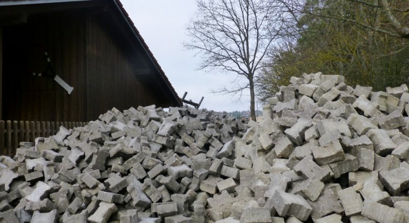 Vom Gelände des ehemaligen Aldi in Kelheim-Affecking konnten wir kostengünstig rund 380 qm Betonpflastersteine erwerben. In den nächsten Tagen werden wir mit dem Pflastern unseres Parkplatzes beginnen.
