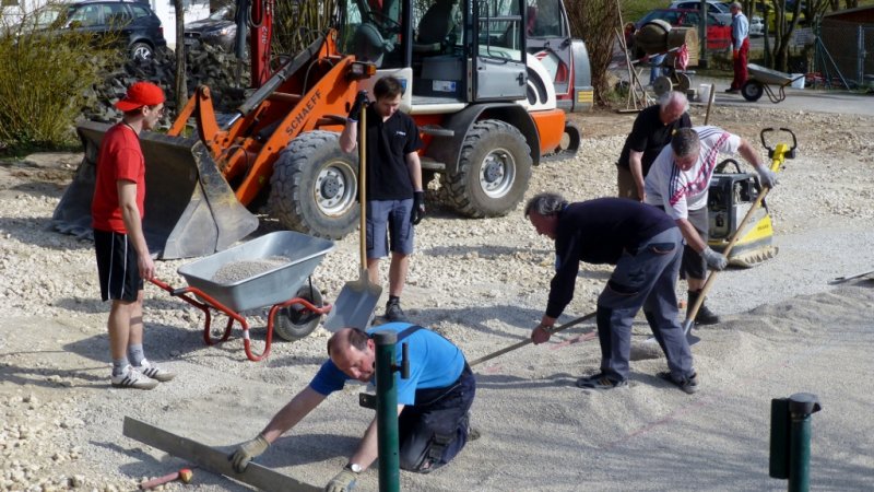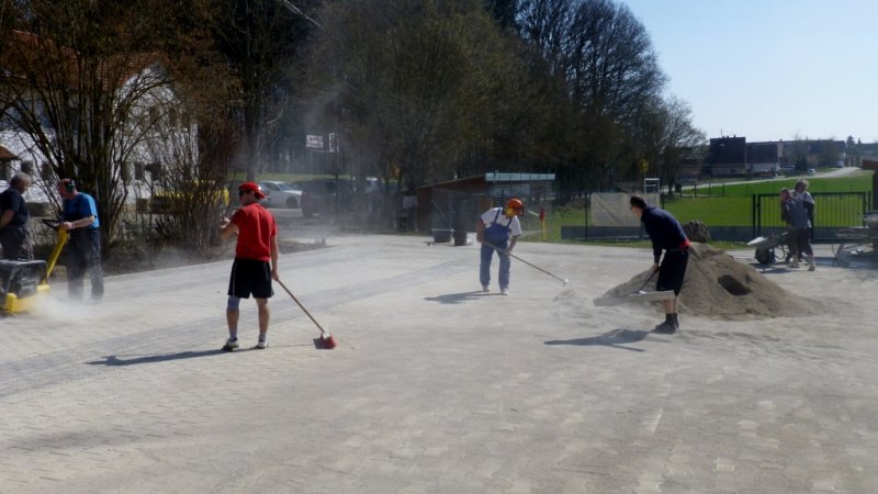 Am Freitag, ab 13.30 Uhr und am Samstag, ab 8.30 Uhr werden noch einmal viele Leute benötigt. Wenns gut geht, werden wir am Samstag mit den Pflasterarbeiten fertig. Sollten sehr viele Arbeiter kommen, können wir schon mit der Frühjahrsinstandsetzung der Tennisplätze beginnen. Wer nur wenig Zeit hat, kann auch für zwei, drei Stunden vorbeikommen. Jede helfende Hand ist willkommen.