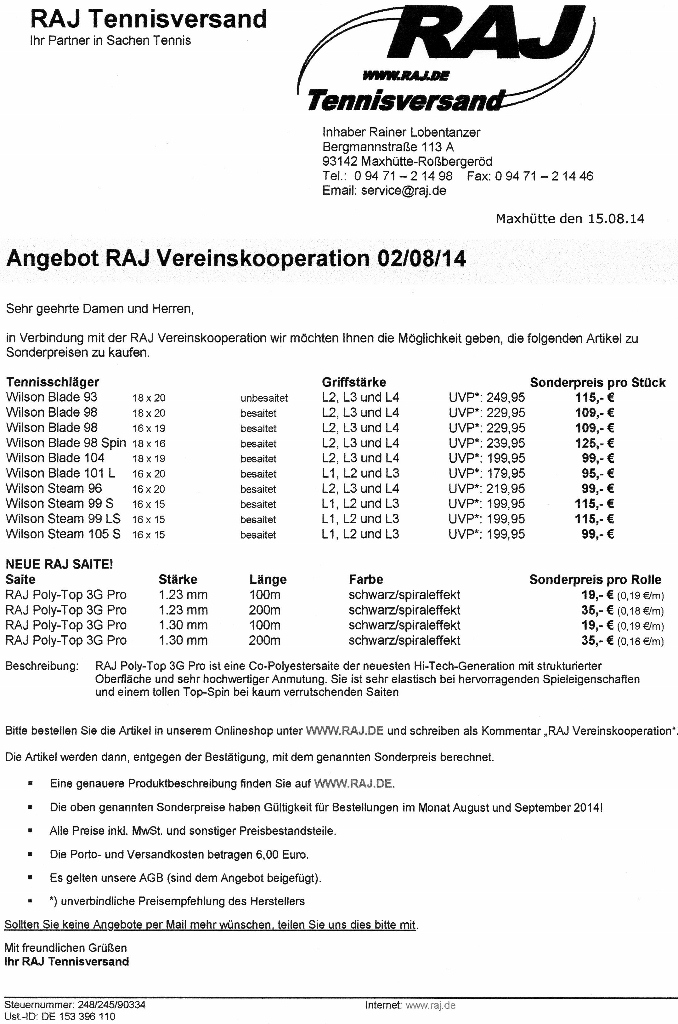 28.8.2014 - Vereinsmeisterschaften Damen und Herren 40/50 fallen aus