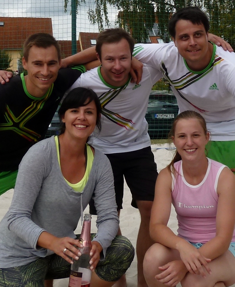 Beim Volleyballturnier pritschten und baggerten heuer acht Mannschaften mit. Gewonnen hat - wie sollte es anders sein - unsere 1. Mannschaft mit Marion Feldl, Melanie Wachter, Johannes Kargl, Flo Hackl und Matthias Roithmeier. Nachdem der erste Wanderpokal nach drei Turniersiegen seit letztem Jahr im Tennisheim steht, musste Bürgermeister Sepp Häckl einen neuen anschaffen. Und auch der bleibt mal für ein Jahr bei uns im Regal.