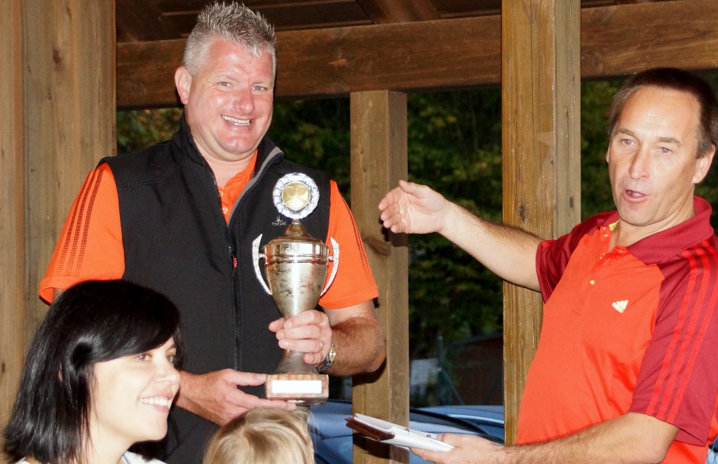Christian Müller gewann gestern die "Brand Open" und damit den ältesten Wanderpokal weit und breit. Anfang der 1990er Jahre - also im vorigen Jahrhundert - vom Fritz Schmid und seinem "Bosch-Dienst" gestiftet, taucht das schon leicht angerostete Teil Jahr für Jahr im Herbst wieder auf. Da kann man getrost von Tradition sprechen. Christian möchte den Pott aber nicht in seinem Trophäenschrank stellen, sondern lässt ihn im Tennisheim in Ruhe auf das nächste Jahr warten.
