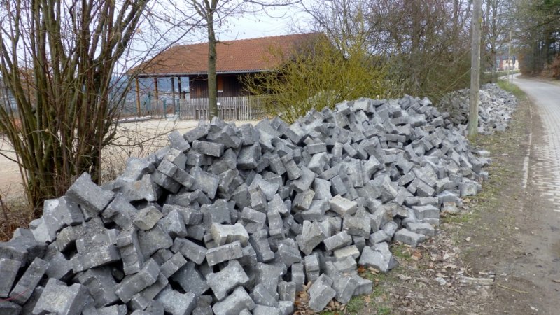 Vom Gelände des ehemaligen Aldi in Kelheim-Affecking konnten wir kostengünstig rund 380 qm Betonpflastersteine erwerben. In den nächsten Tagen werden wir mit dem Pflastern unseres Parkplatzes beginnen.
