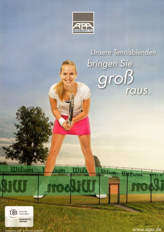 Da schlägt man den neuen, 2014er Werbeprospekt der Firma APA aus Neuwied auf und was sticht auf Seite 2 sofort ins Auge: DIE Tennisblende von Schneider Weisse, die seit letztem Jahr bei uns auf der Tennisanlage hängt. Erkennbar an DEM gelben Wasserschlauch, der NUR auf unseren Plätzen rumliegt.