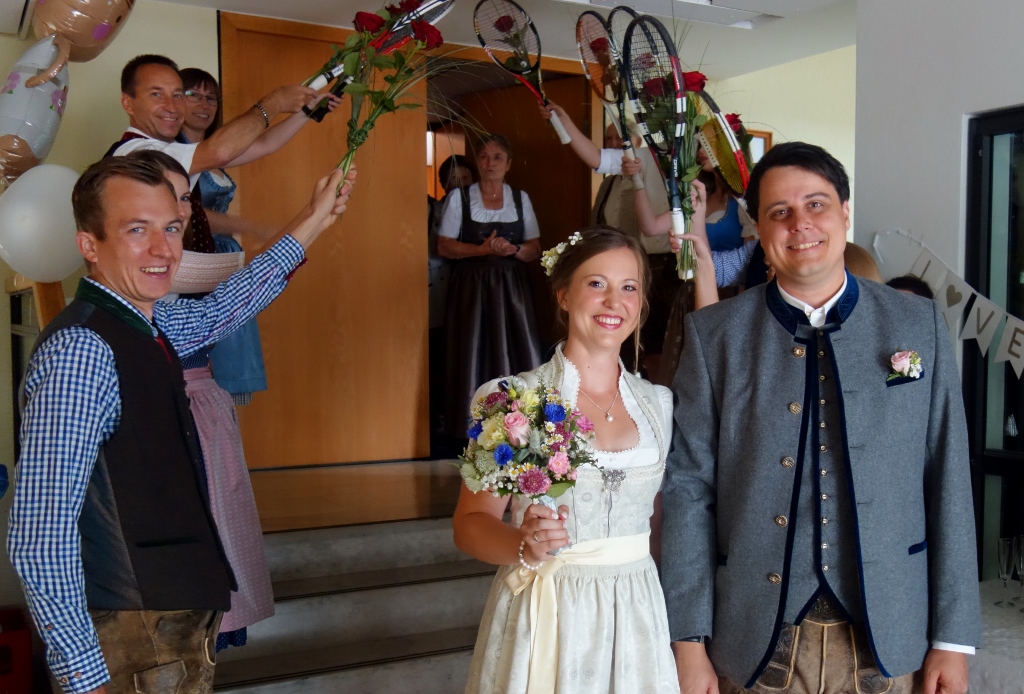 Unsere beiden Vereinsausschussmitglieder Florian Hackl und Marion Feldl (jetzt Hackl) haben sich getraut. Im Brandler Standesamt standen einige Tennisfreunde mit geschmückten Tennisschlägern spalier. Vorsitzender Armin Steger gratulierte im Namen des TCI und überreichte Blumen und ein kleines Präsent. Der TCI wünscht beiden alles Gute für die gemeinsame Zukunft.