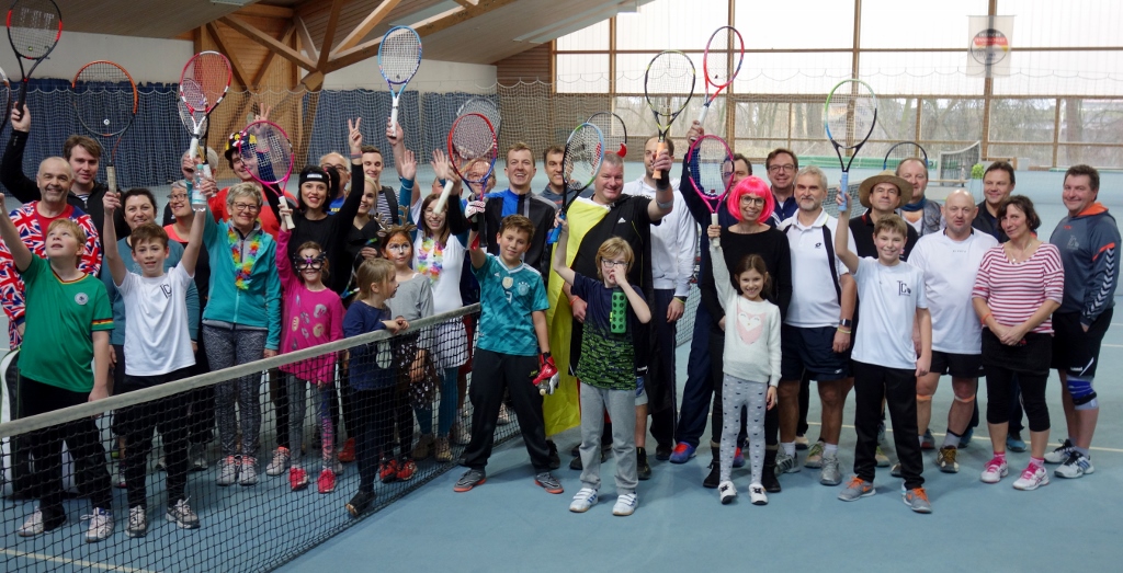 27 Erwachsene und 9 Kinder waren beim 2. TCI-Hallenturnier dabei. Viele maskiert und alle bester Laune. Ein echtes Gauditurnier,
